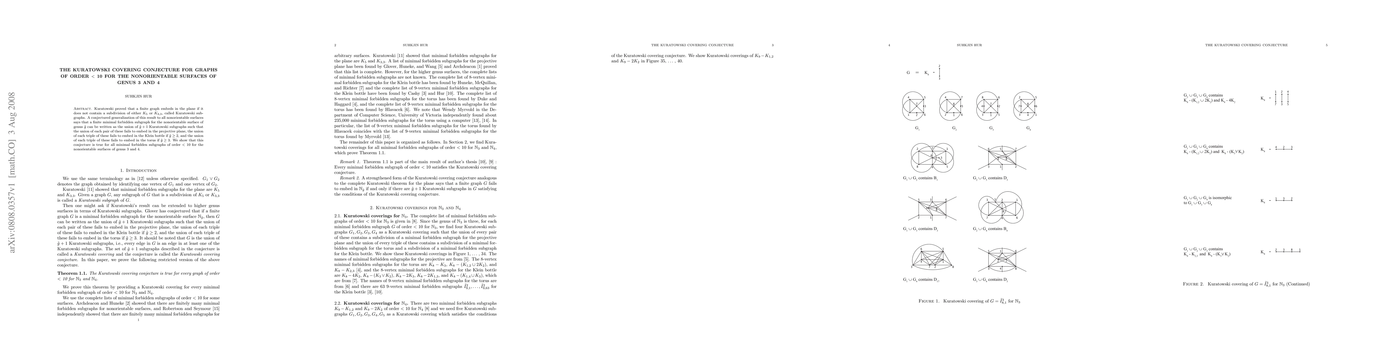 The paper proves a conjecture about nonorientable surfaces of genus 3 and 4, showing that minimal forbidden subgraphs of order less than 10 can be broken down into specific Kuratowski subgraphs with certain embedding restrictions.