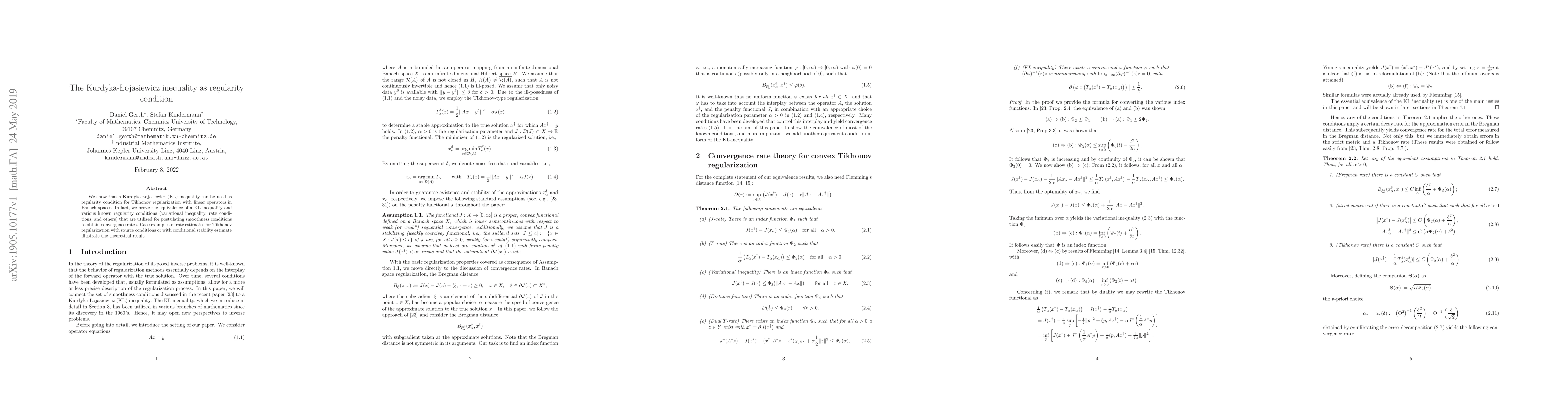 The paper demonstrates that the Kurdyka-\L{}ojasiewicz (KL) inequality serves as a regularity condition for Tikhonov regularization in Banach spaces, proving its equivalence to other known regularity conditions and providing case examples for rate estimates.