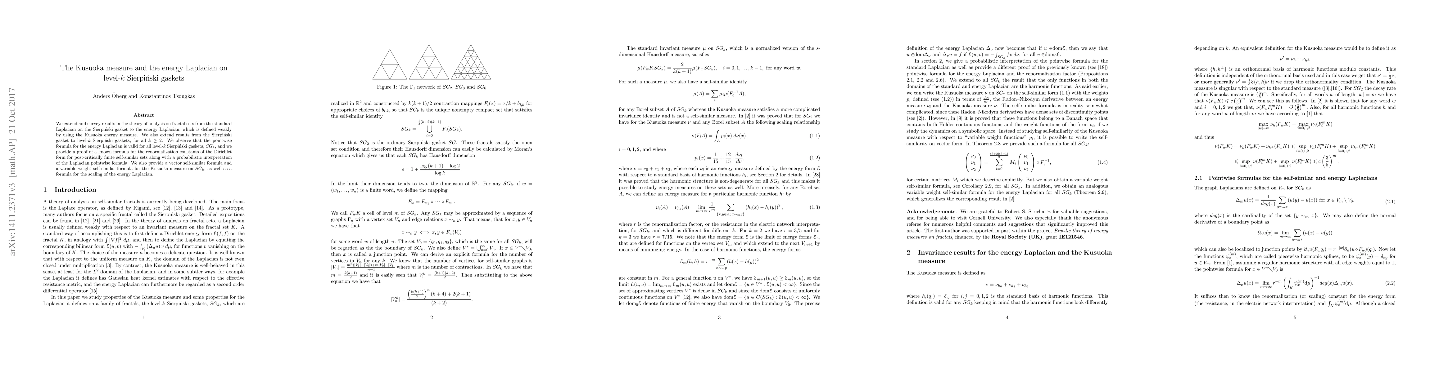 This paper extends research on fractal analysis to level-k Sierpiłski gaskets using the Kusuoka energy measure, proving a pointwise formula for the energy Laplacian and providing new formulas for the Kusuoka measure.