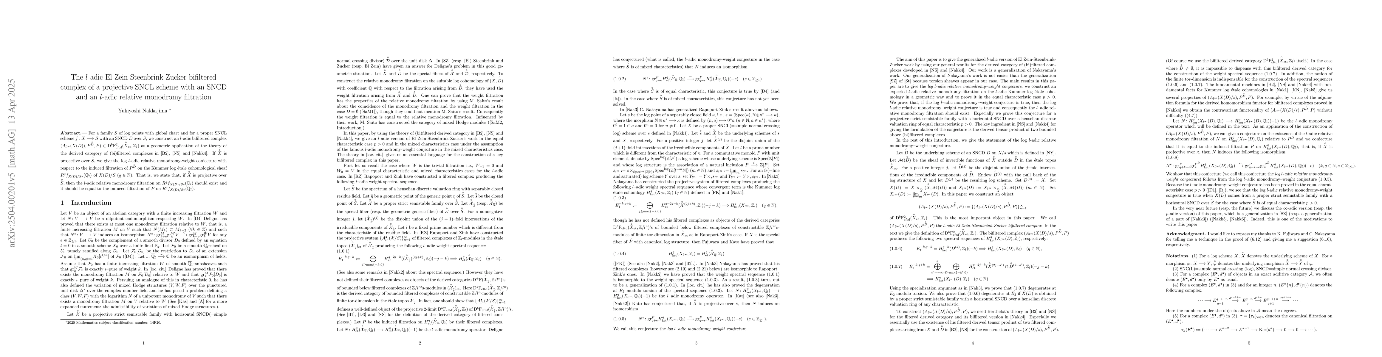 The construction and analysis of the l-adic El Zein-Steenbrink-Zucker bifiltered complex, along with the formulation of the log l-adic relative monodromy-weight conjecture, represent a significant technical advancement in the study of l-adic cohomology and monodromy filtrations.