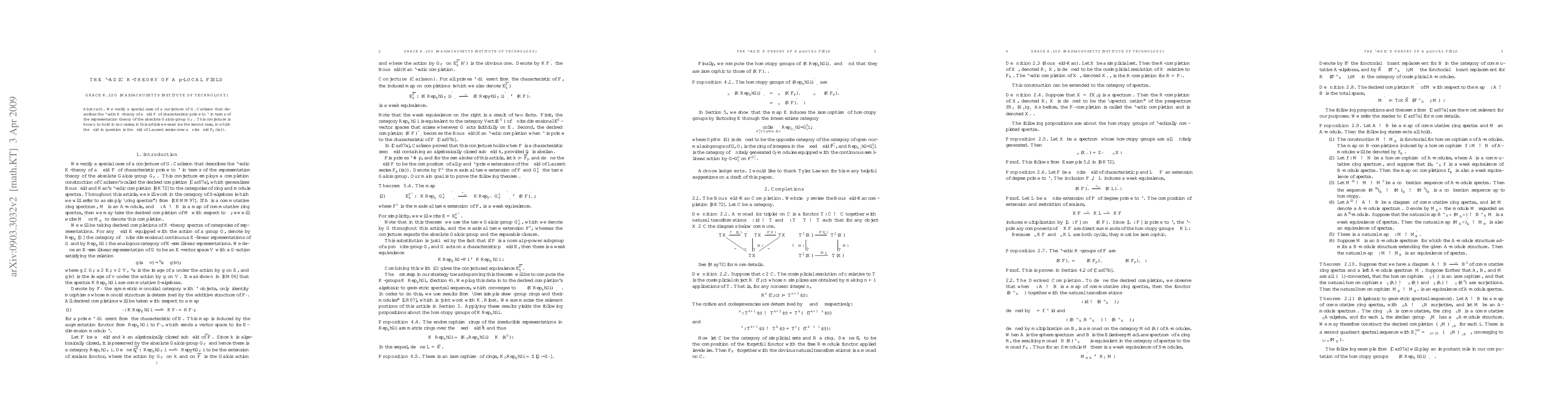 This paper verifies a special case of Carlsson's conjecture on the $l$-adic $K$-theory of $p$-local fields, specifically focusing on the field of Laurent series over a finite field $\FF_{p}((x))$, and connects it to the representation theory of the absolute Galois group. This extends the known validity of the conjecture to a new context.