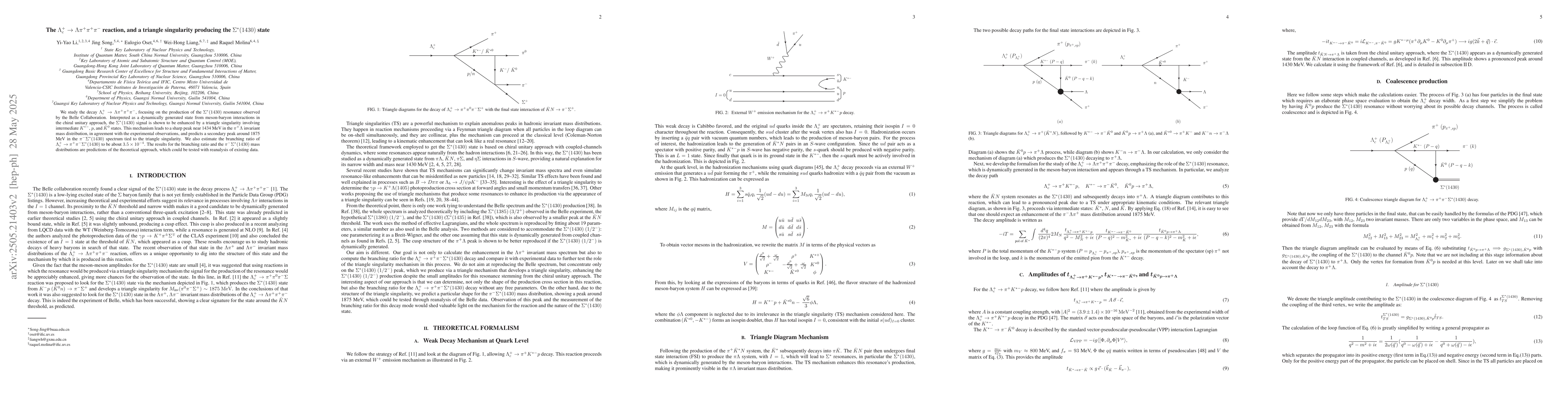 The paper presents a detailed analysis of the $\Lambda_c^+ \to \Lambda \pi^+ \pi^+ \pi^-$ decay using the chiral unitary approach, demonstrating the role of triangle singularities in resonance production.