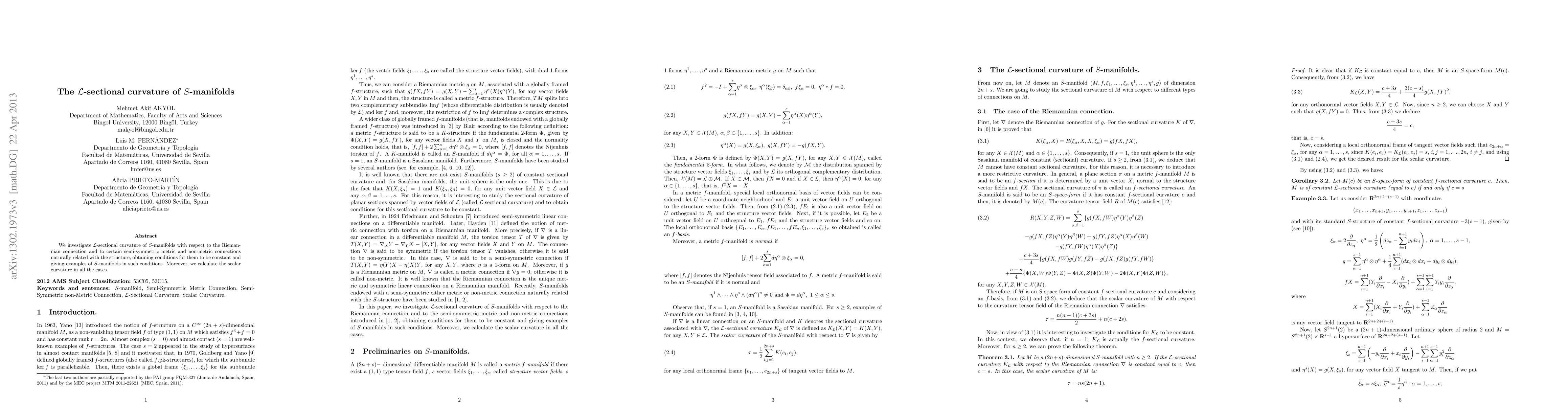This research examines the L-sectional curvature of S-manifolds under Riemannian and semi-symmetric connections, identifies conditions for constant curvature, and provides examples. It also computes the scalar curvature in these scenarios.