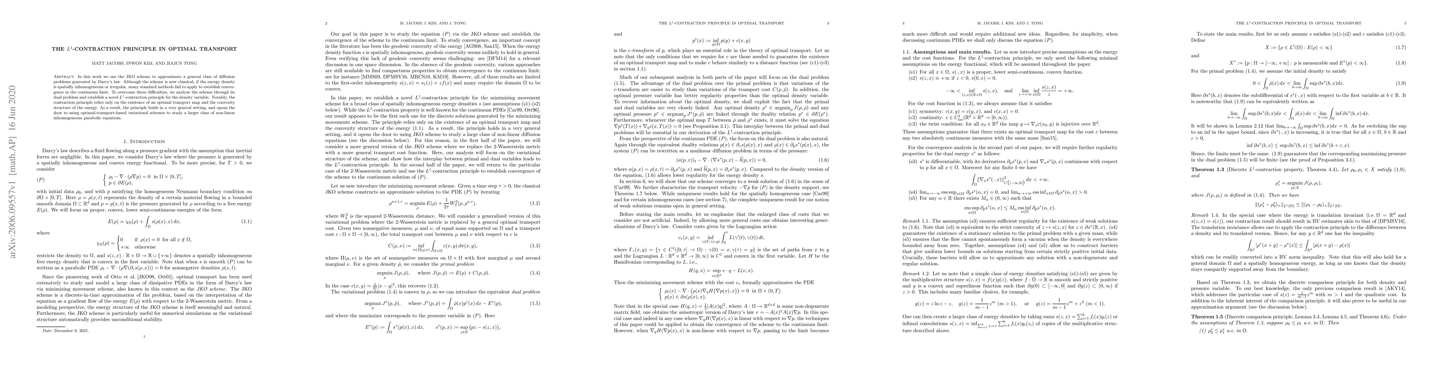 This paper introduces an $L^1$-contraction principle for the JKO scheme applied to diffusion problems from Darcy's law, overcoming difficulties in establishing convergence for irregular energy densities. The principle relies on optimal transport maps and convexity, enabling its application to a broader range of non-linear parabolic equations.