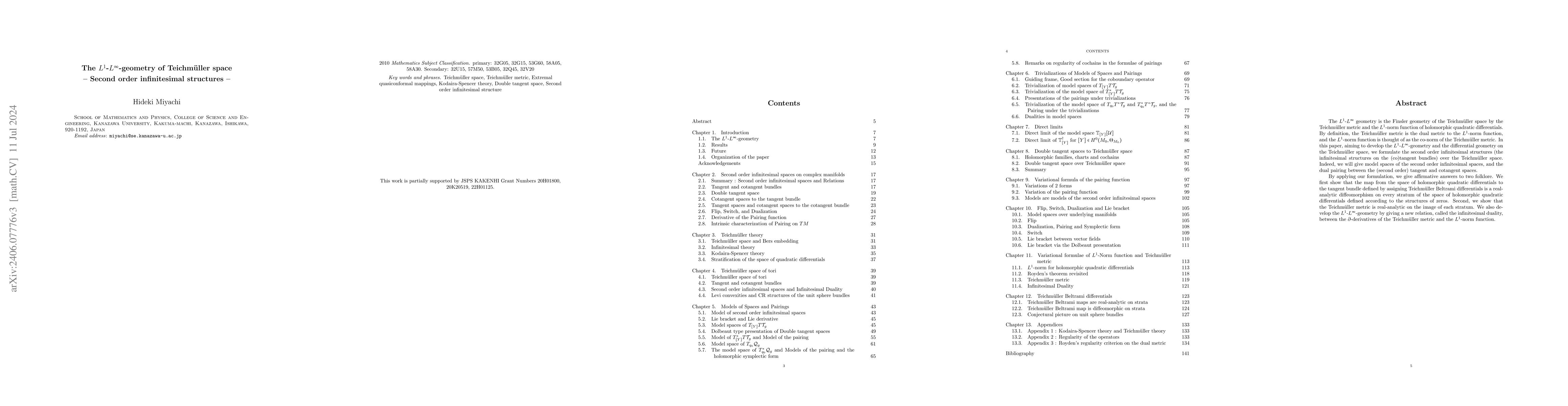 This paper develops the $L^1$-$L^\infty$ geometry on Teichmüller space by introducing second order infinitesimal structures and proving their real-analyticity. It establishes a real-analytic diffeomorphism between holomorphic quadratic differentials and tangent bundles, and shows the real-analyticity of the Teichmüller metric on each stratum.