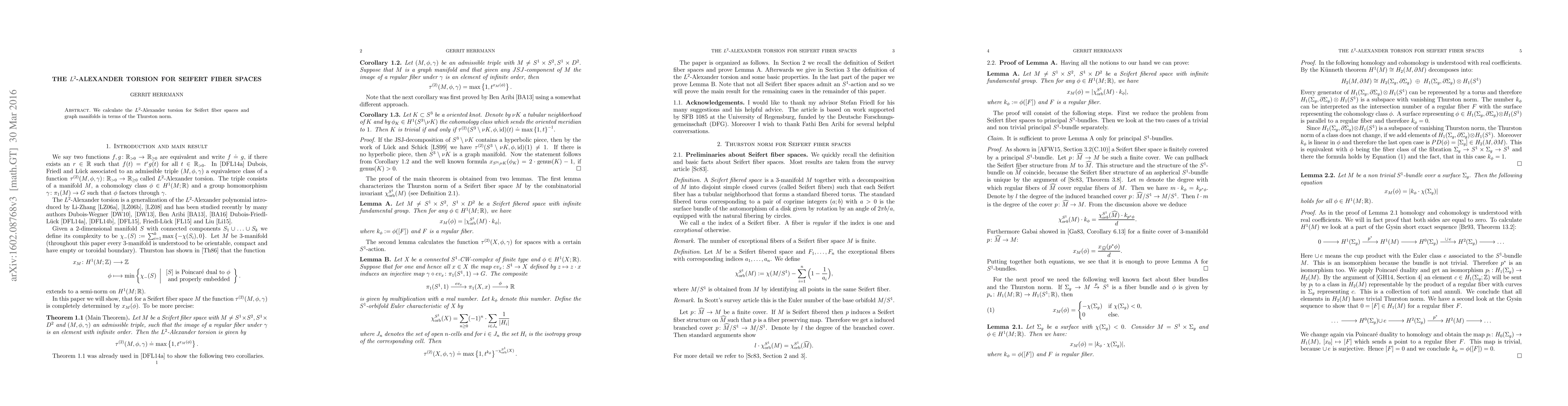 The paper computes the $L^2$-Alexander torsion for Seifert fiber spaces and graph manifolds, linking these calculations to the Thurston norm. This provides new insights into the topological properties of these geometric structures.