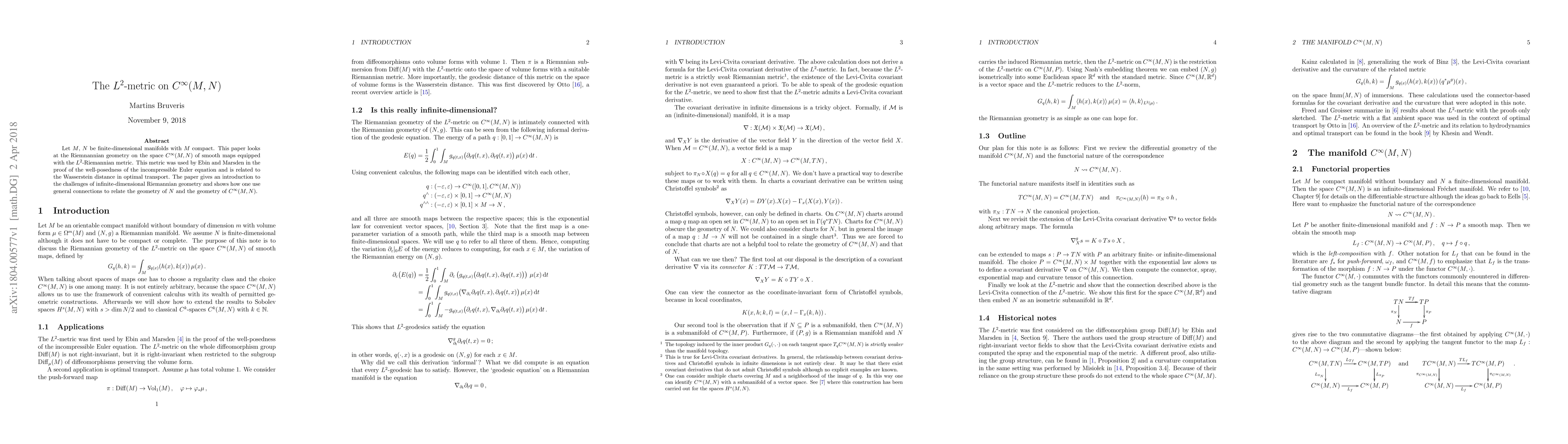 This paper explores the Riemannian geometry on the space of smooth maps between finite-dimensional manifolds, specifically focusing on the $L^2$-metric used in solving the incompressible Euler equation.