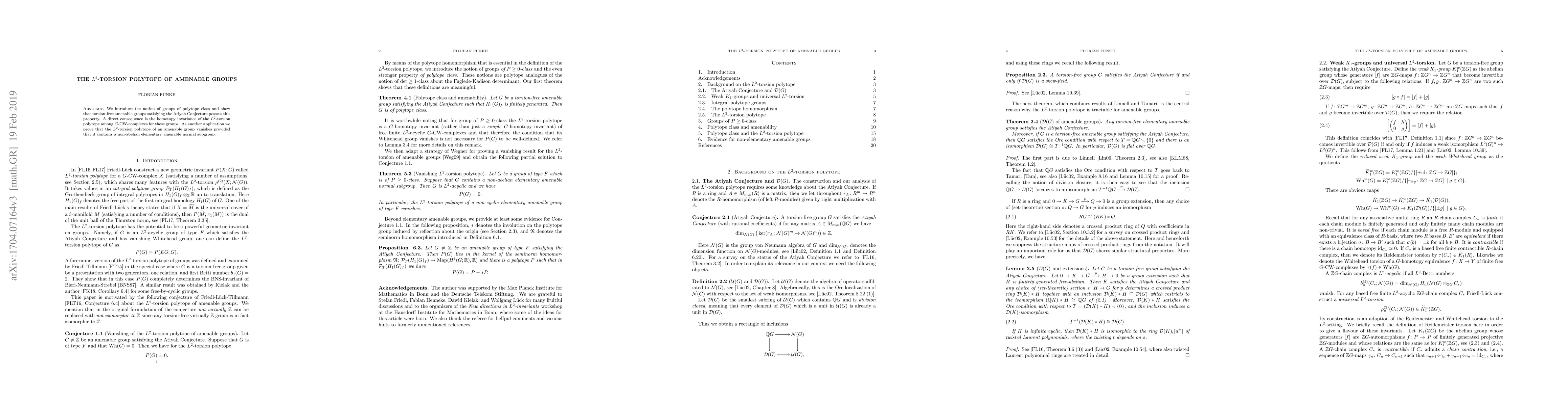We introduce the notion of groups of polytope class and show that torsion-free amenable groups satisfying the Atiyah Conjecture possess this property. A direct consequence is the homotopy invariance of the $L^2$-torsion polytope among $G$-CW-complexes for these groups. As another application we prove that the $L^2$-torsion polytope of an amenable group vanishes provided that it contains a non-abelian elementary amenable normal subgroup.