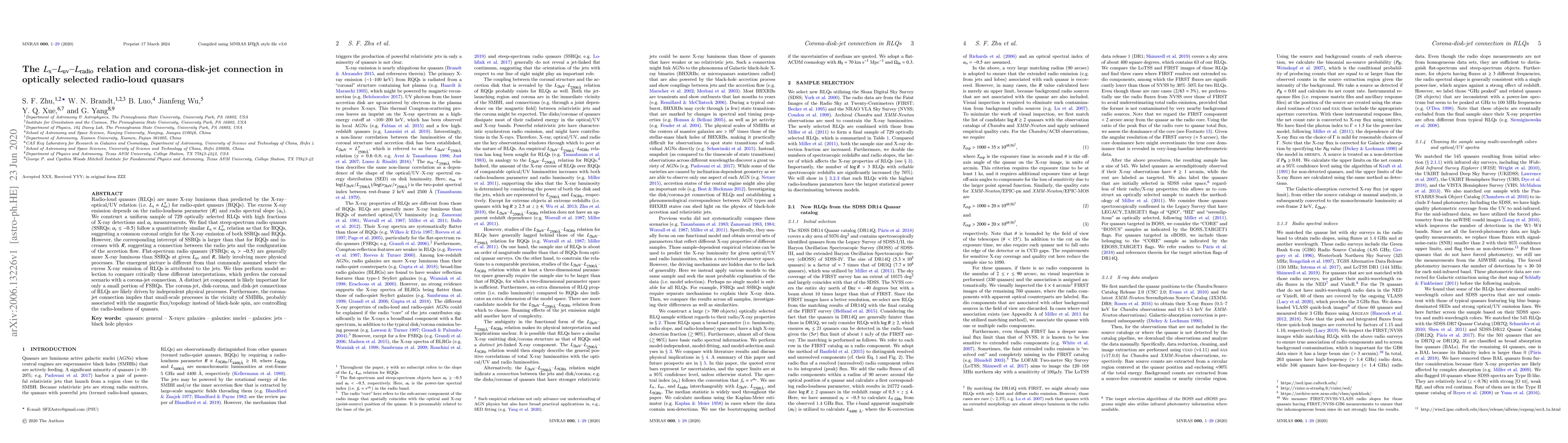 This paper investigates the $L_\mathrm{x}$-$L_\mathrm{uv}$-$L_\mathrm{radio}$ relation in radio-loud quasars (RLQs) and finds that steep-spectrum RLQs follow a similar X-ray-UV relation as radio-quiet quasars, suggesting a common coronal origin. However, the excess X-ray emission in flat-spectrum RLQs is more complex, indicating a different mechanism, likely involving the corona-jet connection rather than a distinct jet component.
