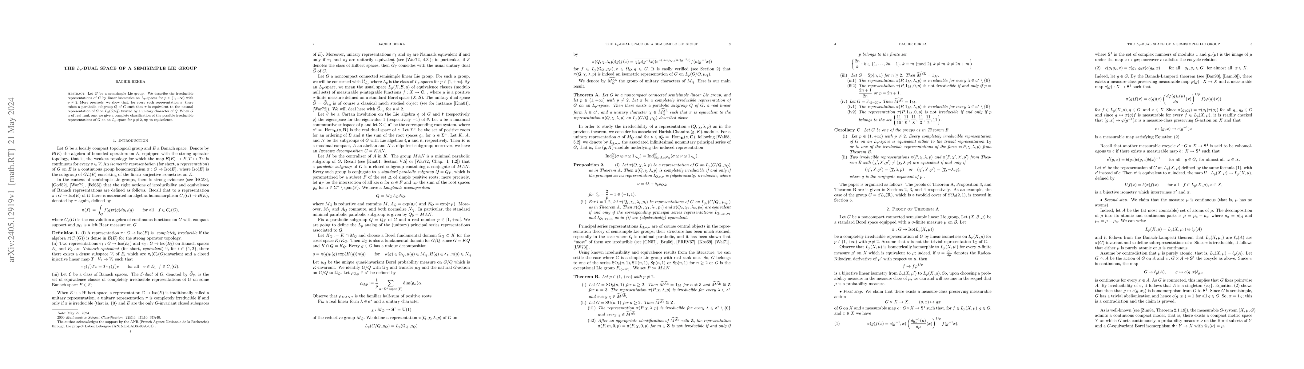 This paper explores the irreducible representations of semisimple Lie groups via linear isometries on $L_p$-spaces for $p\neq 2$ and $p\in(1,+\infty)$. It demonstrates the equivalence of such representations to natural representations on $L_p(G/Q)$ twisted by a unitary character, with a complete classification for groups of real rank one.