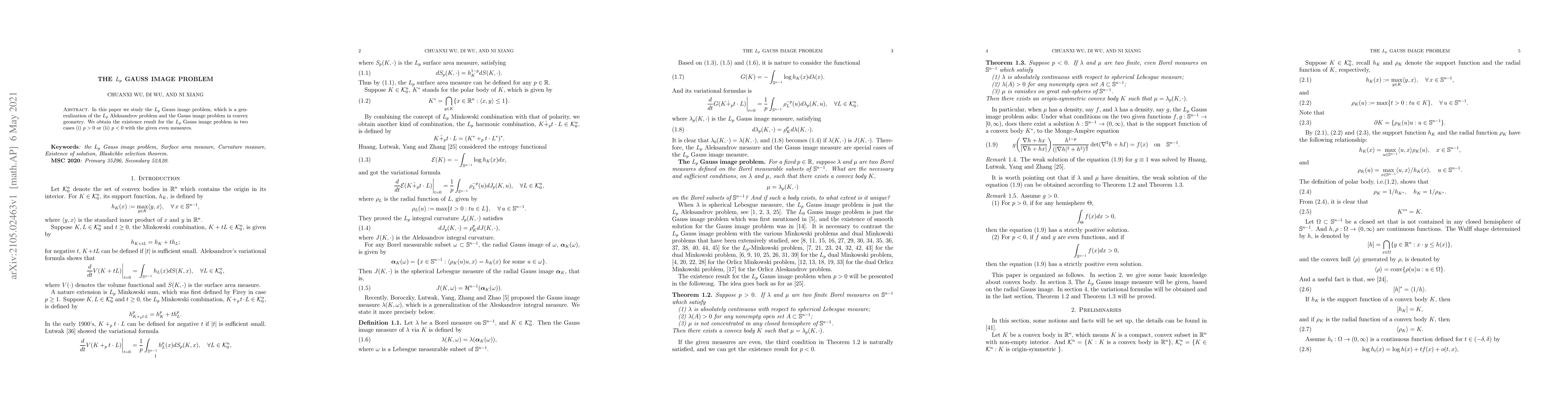 Researchers solved the $L_p$ Gauss image problem in two cases: when p is greater than 0 or less than 0 with given even measures, providing an existence result for the problem.