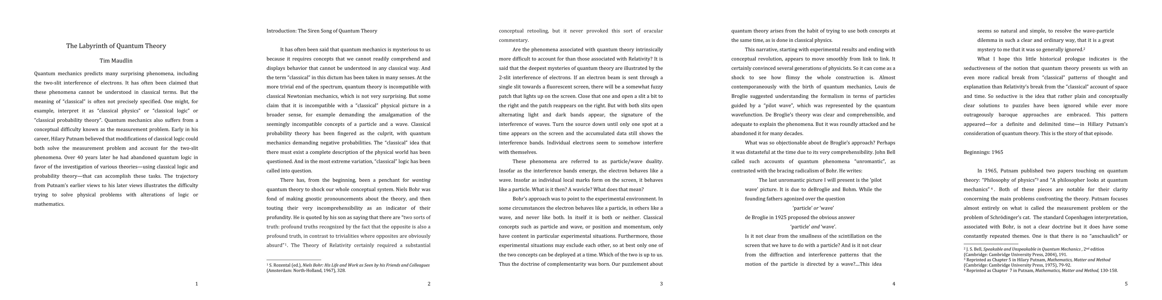 Quantum mechanics predicts many surprising phenomena, including the two-slit interference of electrons. It has often been claimed that these phenomena cannot be understood in classical terms. But the meaning of "classical" is often not precisely specified. One might, for example, interpret it as "classical physics" or "classical logic" or "classical probability theory". Quantum mechanics also suffers from a conceptual difficulty known as the measurement problem. Early in his career, Hilary Putnam believed that modifications of classical logic could both solve the measurement problem and account for the two-slit phenomena. Over 40 years later he had abandoned quantum logic in favor of the investigation of various theories--using classical logic and probability theory--that can accomplish these tasks. The trajectory from Putnam's earlier views to his later views illustrates the difficulty trying to solve physical problems with alterations of logic or mathematics.