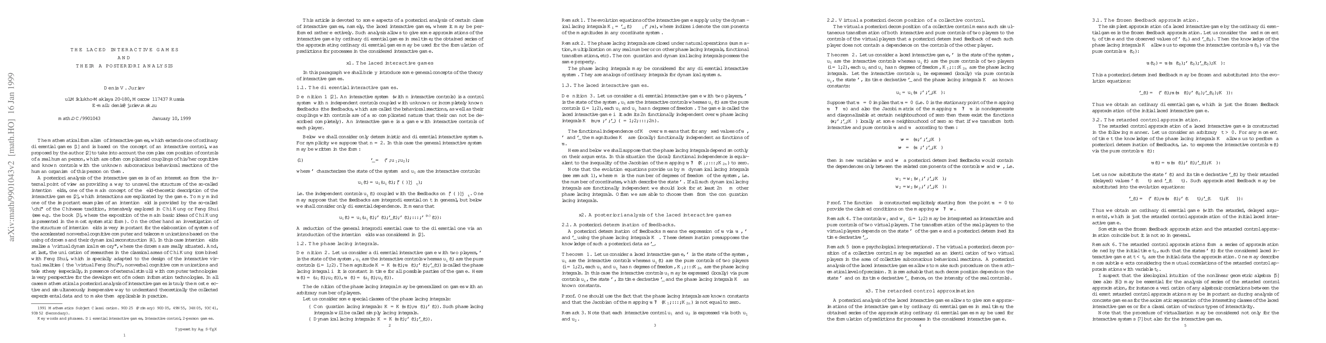 An important class of differential interactive games, namely, one of the laced interactive games is considered. A posteriori analysis of such games (including the virtual a posteriori decomposition of a collective control) is discussed. Approximations of the laced interactive games by the ordinary differential games, the frozen feedback approximation and the retarded control approximation, are constructed. Applications are briefly specified.