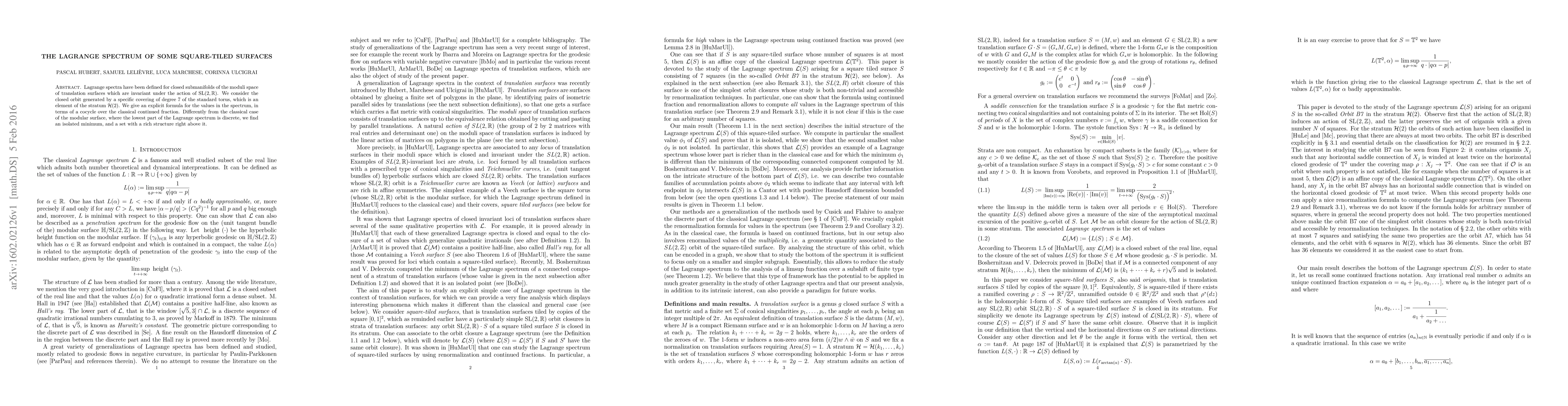 Researchers calculated the Lagrange spectrum of a specific torus covering with a degree 7 cover, finding an isolated minimum and a richly structured set above it.