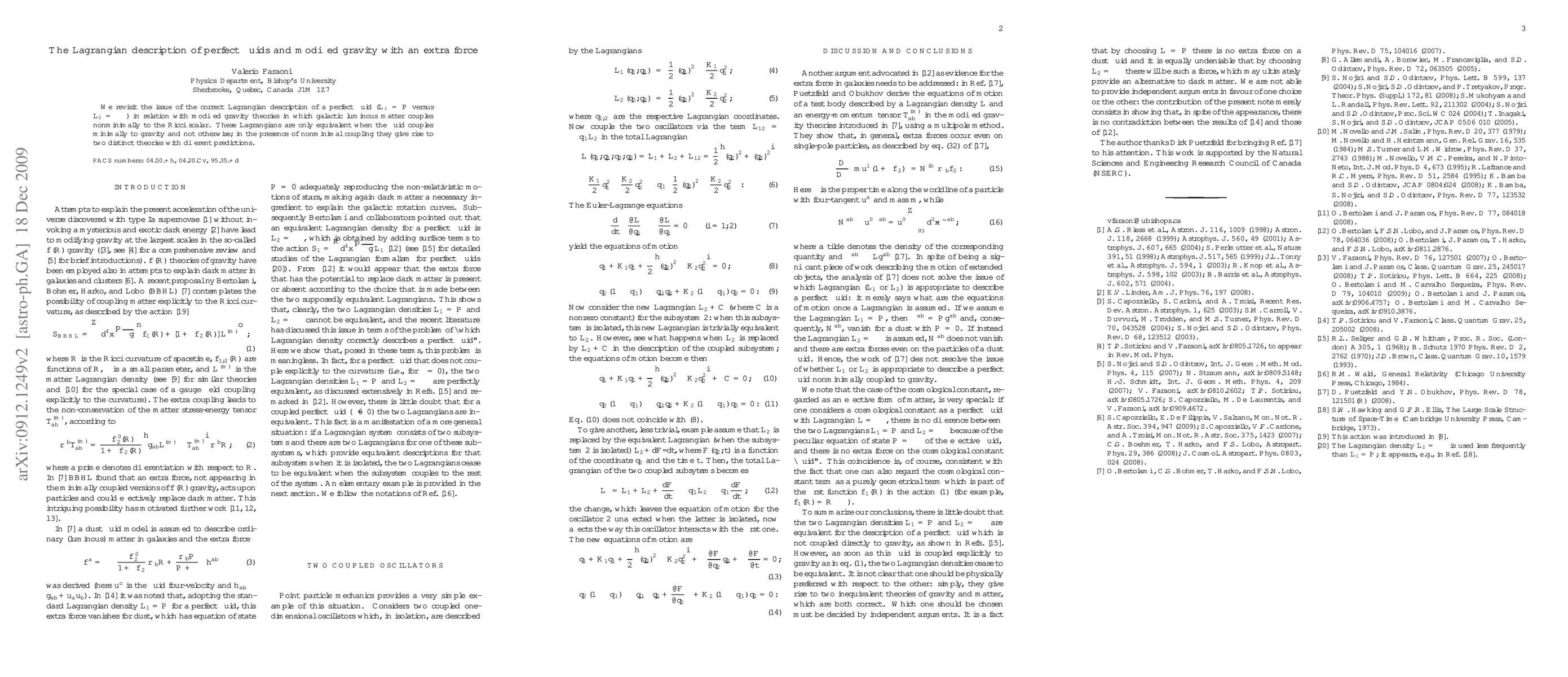 We revisit the issue of the correct Lagrangian description of a perfect fluid (pressure versus minus energy density) in relation with modified gravity theories in which galactic luminous matter couples nonminimally to the Ricci scalar. These Lagrangians are only equivalent when the fluid couples minimally to gravity and not otherwise; in the presence of nonminimal coupling they give rise to two distinct theories with different predictions.
