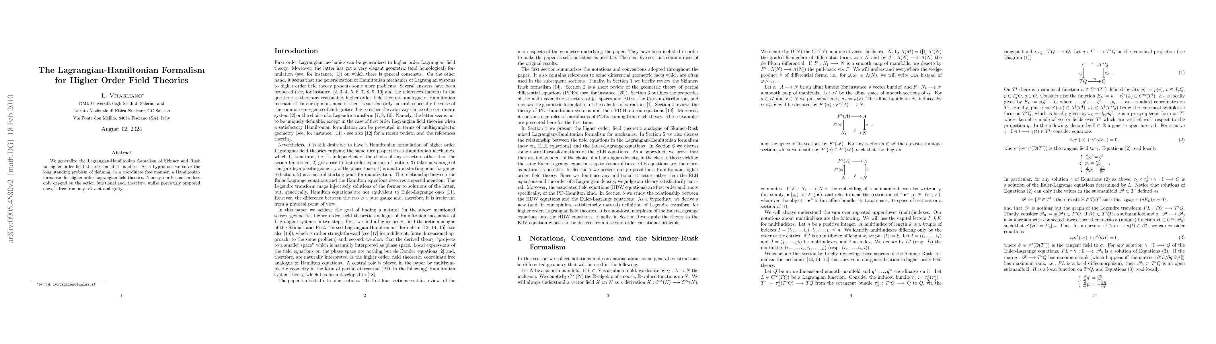 This paper generalizes the Lagrangian-Hamiltonian formalism for higher order field theories on fiber bundles, providing a coordinate-free Hamiltonian framework that relies solely on the action functional, eliminating ambiguities found in previous approaches.