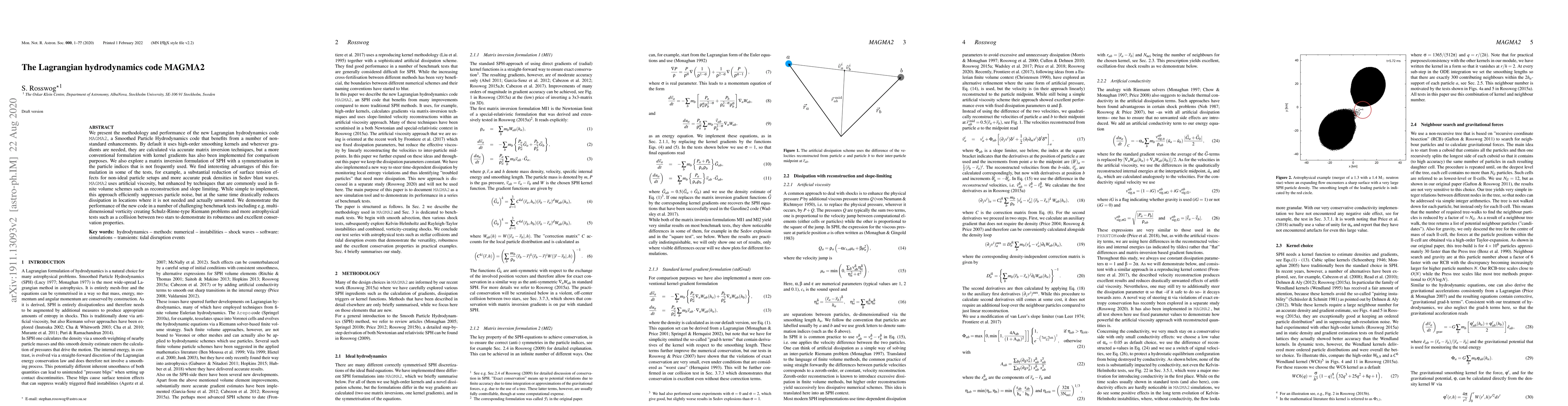 A new Lagrangian hydrodynamics code, MAGMA2, offers improved performance and accuracy in simulations of complex astrophysical phenomena, including star collisions and Riemann problems.