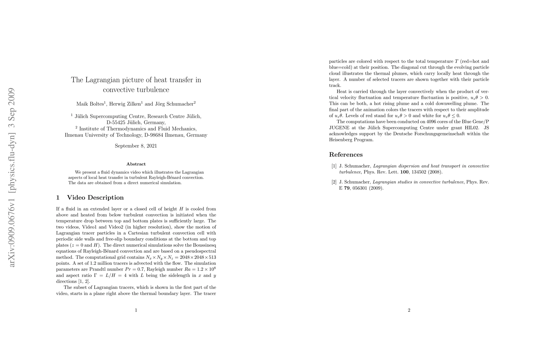 Researchers used computer simulations to visualize heat transfer in turbulent fluid flows, revealing unique patterns of hot and cold fluid motions. The study provides new insights into the dynamics of convective turbulence.