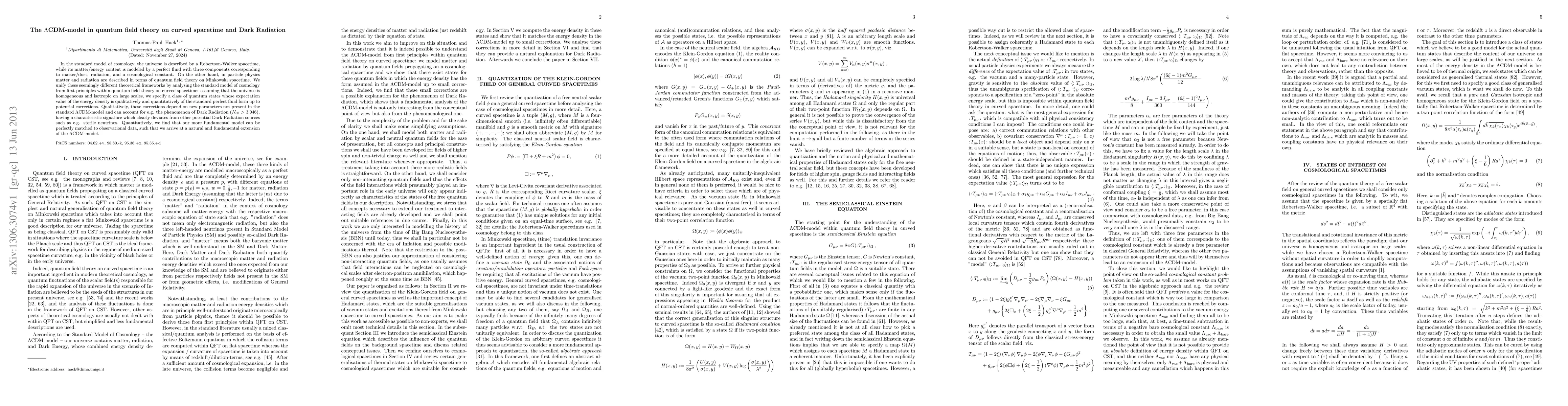 This paper proposes a unification of the standard cosmological model (Lambda CDM) with quantum field theory on curved spacetime, introducing a new class of quantum states to account for Dark Radiation, which deviates from traditional sources like sterile neutrinos, while still matching observational data.