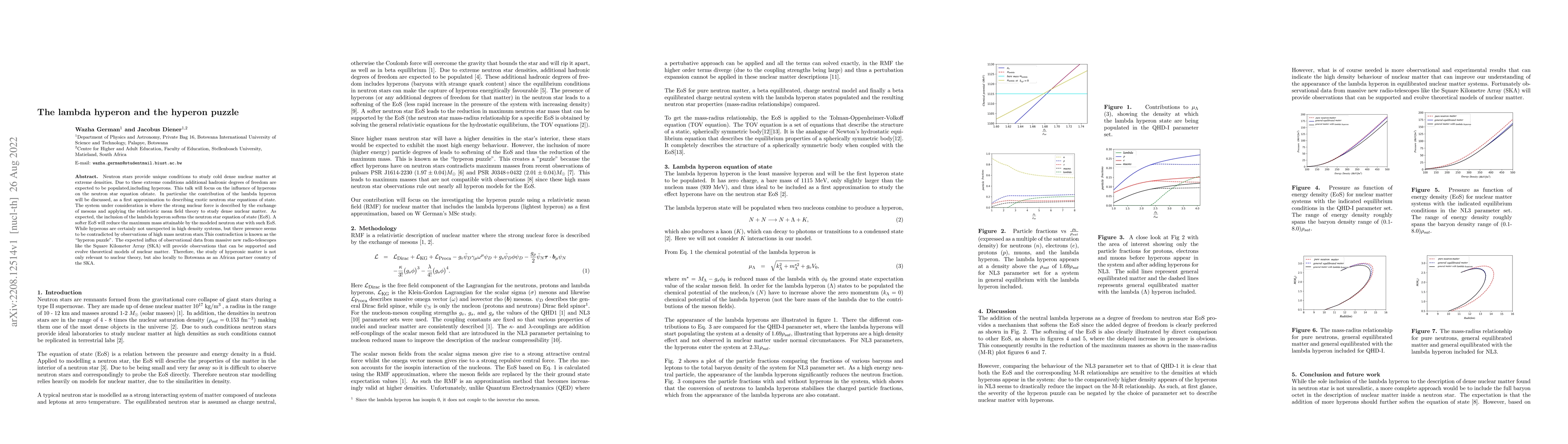 This paper investigates the impact of hyperons, particularly the lambda hyperon, on the equation of state for neutron stars, revealing that their inclusion softens the equation of state and reduces maximum neutron star mass. The presence of hyperons, however, contradicts observations of high-mass neutron stars, forming the "hyperon puzzle," which future observational data from the SKA may help resolve.