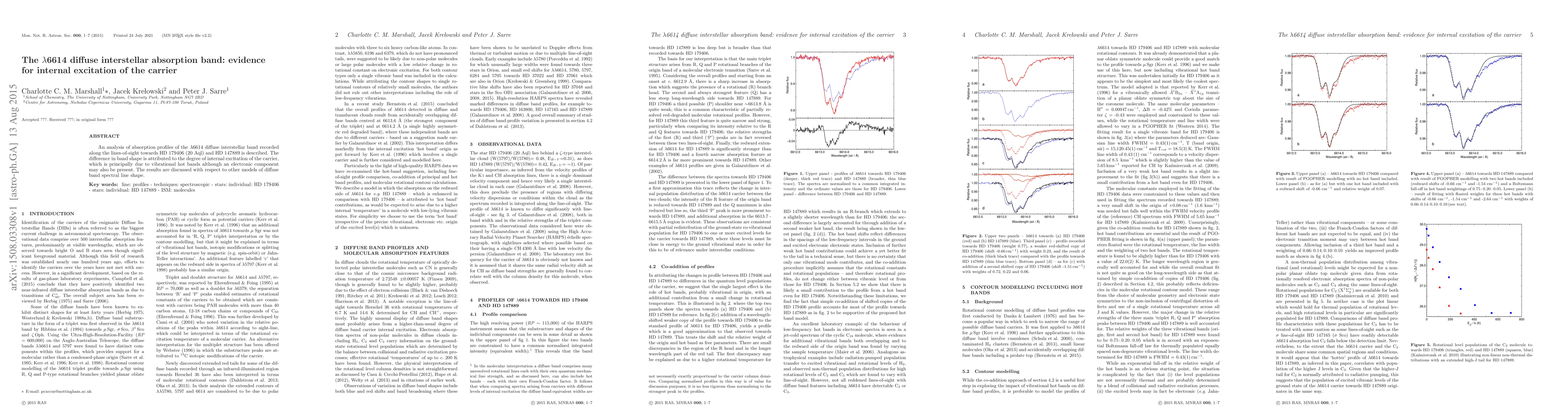 This paper analyzes the $\lambda$6614 diffuse interstellar band absorption profiles towards HD 179406 and HD 147889, attributing differences in band shape to varying degrees of internal excitation of the carrier, primarily due to vibrational hot bands, with possible electronic contributions. The findings are compared with other models of diffuse band spectral line shapes.