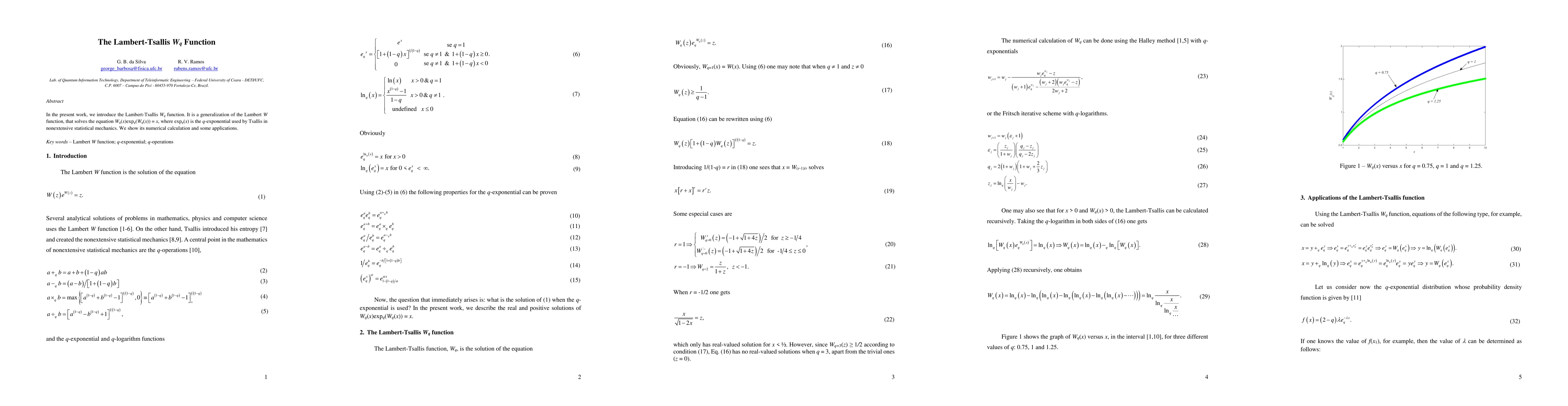 The Lambert-Tsallis Wq function generalizes the Lambert W function, solving the equation Wq(x)expq(Wq(x)) = x, where expq(x) is Tsallis' q-exponential. The paper discusses its numerical computation and potential applications.