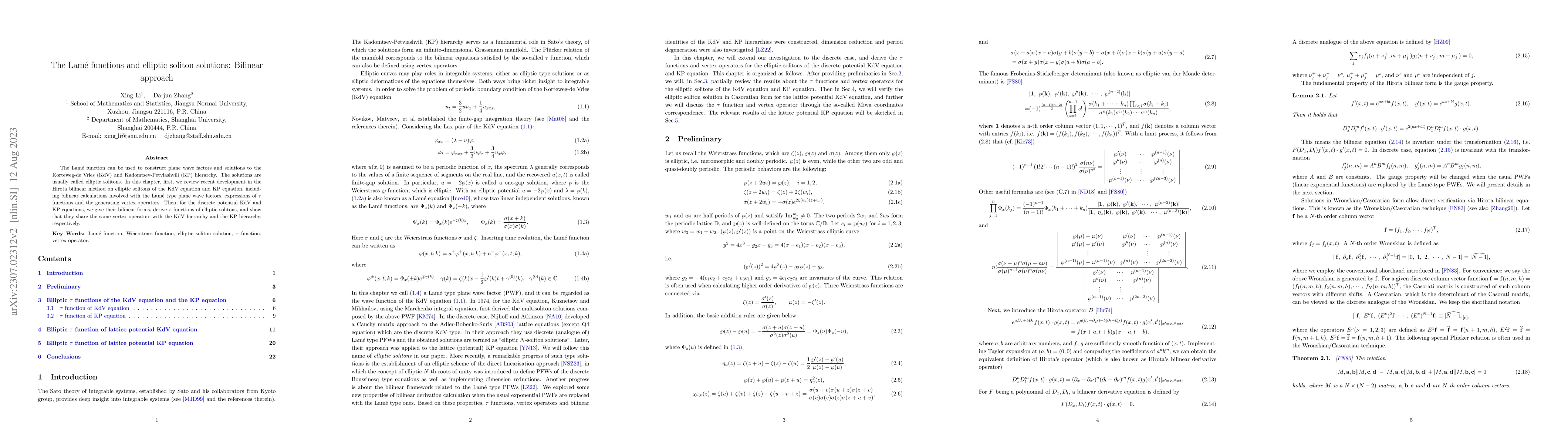 This paper reviews the use of Lam\'e functions to construct elliptic soliton solutions for the KdV and KP equations via the Hirota bilinear method, detailing bilinear calculations and generating vertex operators, and extends these findings to discrete potential versions of the KdV and KP equations.