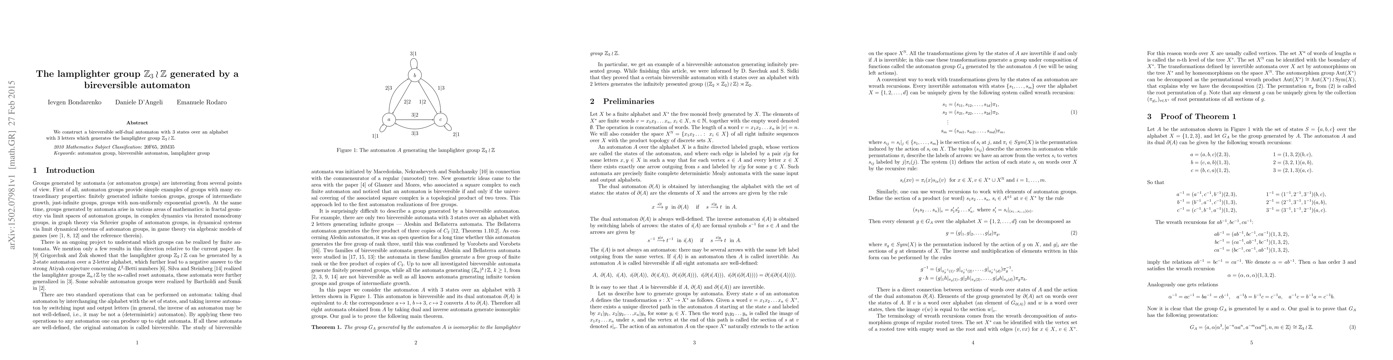 Summary: This paper constructs a $3$-state bireversible self-dual automaton over a $3$-letter alphabet that generates the lamplighter group $\mathbb{Z}_3\wr\mathbb{Z}$. The automaton demonstrates a novel method for encoding group actions.