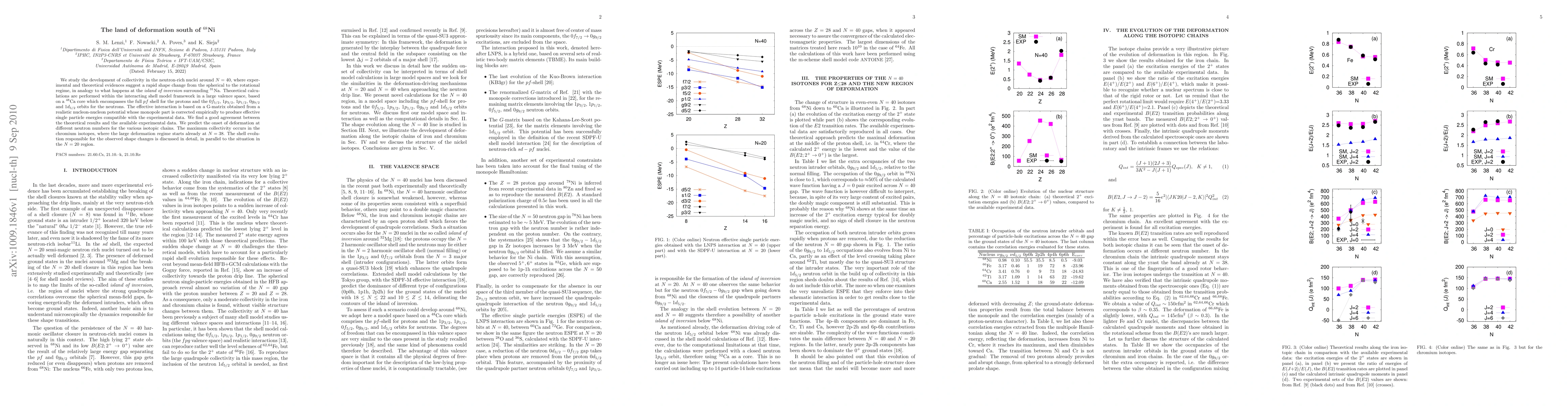 We study the development of collectivity in the neutron-rich nuclei around $N=40$, where experimental and theoretical evidences suggest a rapid shape change from the spherical to the rotational regime, in analogy to what happens at the {\it island of inversion} surrounding $^{31}$Na. Theoretical calculations are performed within the interacting shell model framework in a large valence space, based on a $^{48}$Ca core which encompasses the full $pf$ shell for the protons and the $0f_{5/2}$, $1p_{3/2}$, $1p_{1/2}$, $0g_{9/2}$ and $1d_{5/2}$ orbits for the neutrons. The effective interaction is based on a G-matrix obtained from a realistic nucleon-nucleon potential whose monopole part is corrected empirically to produce effective single particle energies compatible with the experimental data. We find a good agreement between the theoretical results and the available experimental data. We predict the onset of deformation at different neutron numbers for the various isotopic chains. The maximum collectivity occurs in the chromium isotopes, where the large deformation regime starts already at $N=38$. The shell evolution responsible for the observed shape changes is discussed in detail, in parallel to the situation in the $N=20$ region.