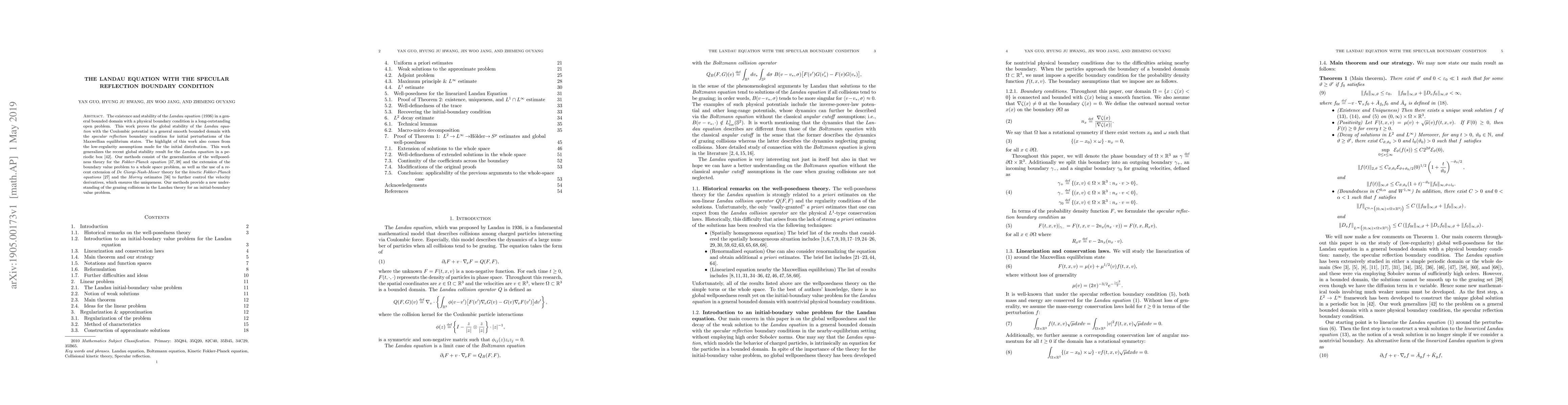 The existence and stability of the Landau equation (1936) in a general bounded domain with a physical boundary condition is a long-outstanding open problem. This work proves the global stability of the Landau equation with the Coulombic potential in a general smooth bounded domain with the specular reflection boundary condition for initial perturbations of the Maxwellian equilibrium states. The highlight of this work also comes from the low-regularity assumptions made for the initial distribution. This work generalizes the recent global stability result for the Landau equation in a periodic box (KGH-2016). Our methods consist of the generalization of the wellposedness theory for the Fokker-Planck equation (HJV-2014, HJJ-2018) and the extension of the boundary value problem to a whole space problem, as well as the use of a recent extension of De Giorgi-Nash-Moser theory for the kinetic Fokker-Planck equations (GIMV-2016) and the Morrey estimates (Polidoro-Ragusa-1998) to further control the velocity derivatives, which ensures the uniqueness. Our methods provide a new understanding of the grazing collisions in the Landau theory for an initial-boundary value problem.