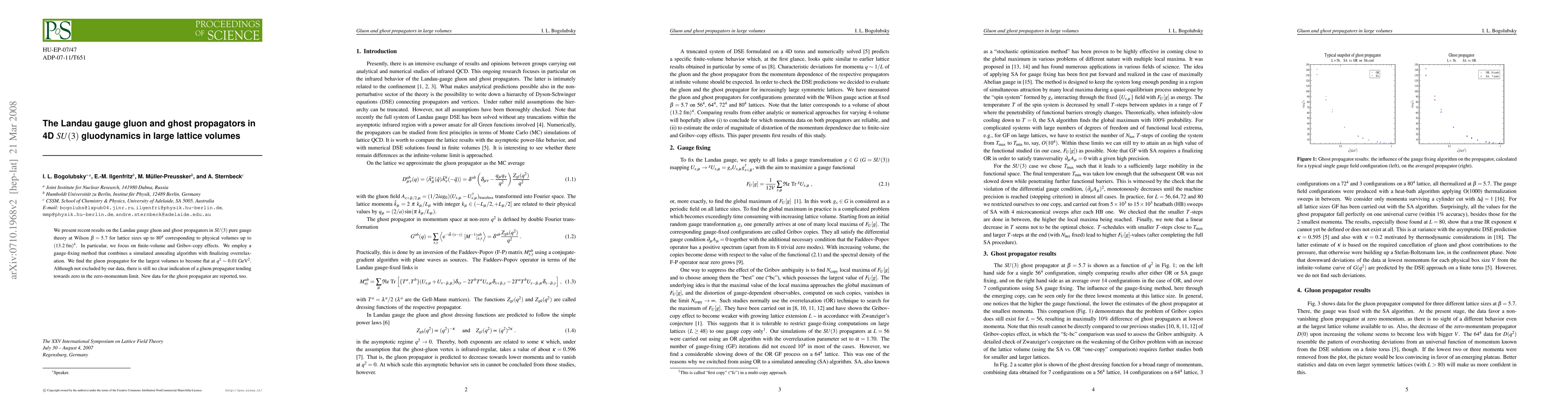 We present recent results of the Landau gauge gluon and ghost propagators in SU(3) pure gauge theory at Wilson \beta=5.7 for lattice sizes up to 80^4 corresponding to physical volumes up to (13.2 fm)^4. In particular, we focus on finite-volume and Gribov copy effects. We employ a gauge fixing method that combines a simulated annealing algorithm with finalizing overrelaxation. We find the gluon propagator for the largest volumes and at q^2 ~ 0.01 GeV^2 to become flat. Although not excluded by our data, there is still no clear indication of a gluon propagator tending towards zero in the zero-momentum limit. New data for the ghost propagator are reported, too.