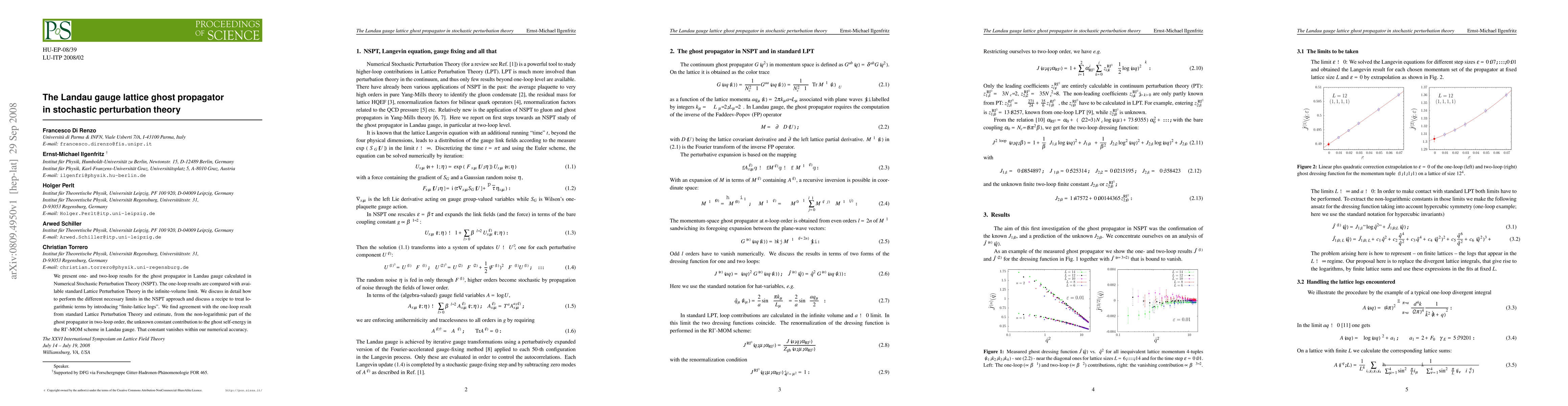 This paper presents one- and two-loop results for the Landau gauge ghost propagator using Numerical Stochastic Perturbation Theory (NSPT), comparing one-loop results with standard Lattice Perturbation Theory. The study details methods for handling necessary limits in NSPT and estimates the constant contribution to the ghost self-energy, finding it vanishes within numerical accuracy.