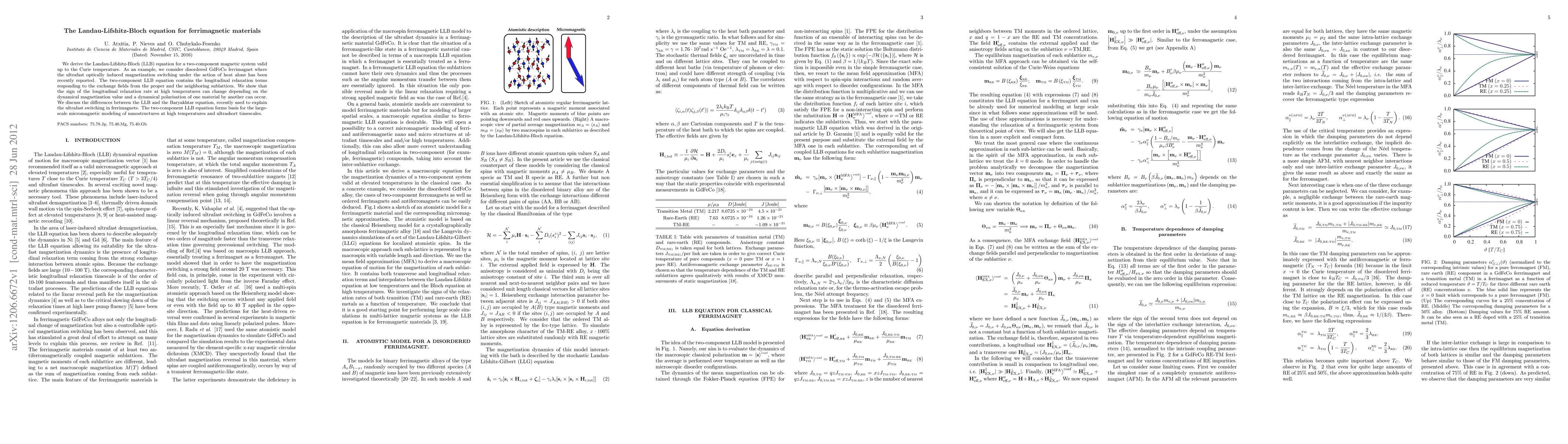 This paper derives the Landau-Lifshitz-Bloch (LLB) equation for a two-component magnetic system in ferrimagnetic materials, applicable up to the Curie temperature, and applies it to the disordered GdFeCo ferrimagnet. It highlights the potential for ultrafast magnetization switching and discusses the differences between the LLB and Baryakhtar equations.