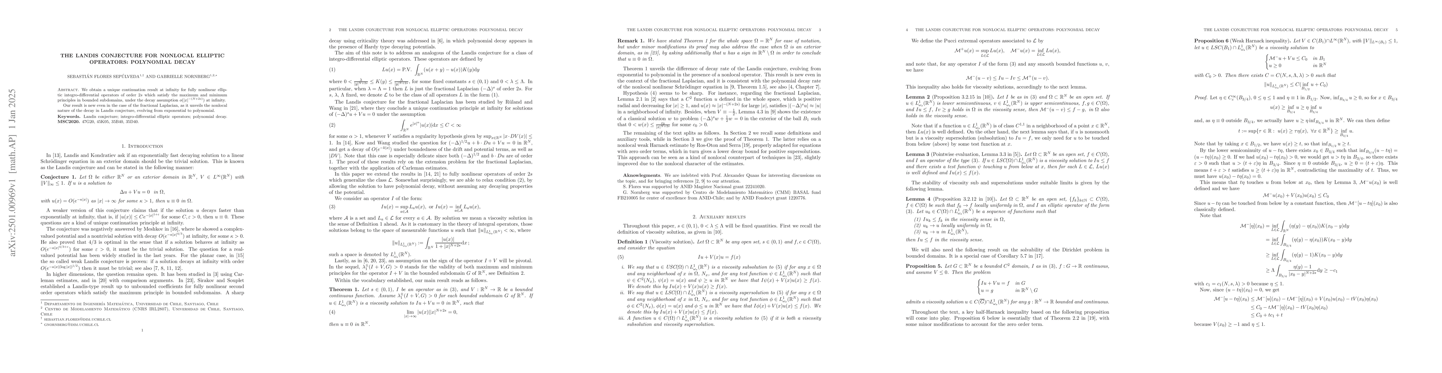 The paper establishes a unique continuation property for nonlocal elliptic operators of order 2s, demonstrating polynomial decay at infinity, a novel finding even for the fractional Laplacian, and revealing the nonlocal decay's transition from exponential to polynomial.
