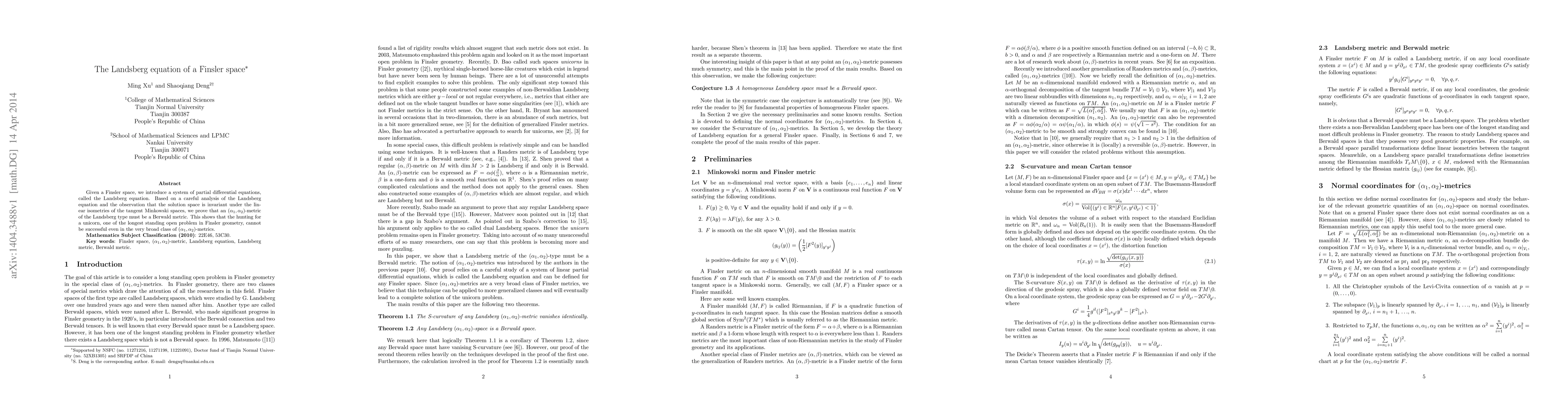 This research introduces the Landsberg equation for Finsler spaces and demonstrates that solutions to this equation, invariant under linear isometries, must be Berwald metrics, proving that the quest for $(\alpha_1, \alpha_2)$-metrics of Landsberg type is futile. This resolves a longstanding open problem in Finsler geometry.