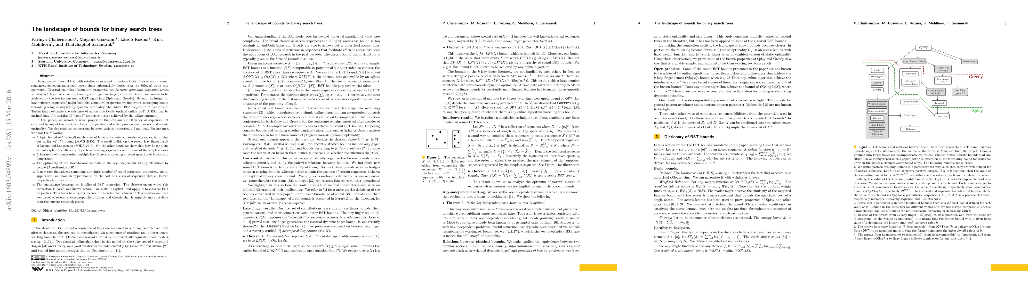 Binary search trees (BSTs) with rotations can adapt to various kinds of structure in search sequences, achieving amortized access times substantially better than the Theta(log n) worst-case guarantee. Classical examples of structural properties include static optimality, sequential access, working set, key-independent optimality, and dynamic finger, all of which are now known to be achieved by the two famous online BST algorithms (Splay and Greedy). (...) In this paper, we introduce novel properties that explain the efficiency of sequences not captured by any of the previously known properties, and which provide new barriers to the dynamic optimality conjecture. We also establish connections between various properties, old and new. For instance, we show the following. (i) A tight bound of O(n log d) on the cost of Greedy for d-decomposable sequences. The result builds on the recent lazy finger result of Iacono and Langerman (SODA 2016). On the other hand, we show that lazy finger alone cannot explain the efficiency of pattern avoiding sequences even in some of the simplest cases. (ii) A hierarchy of bounds using multiple lazy fingers, addressing a recent question of Iacono and Langerman. (iii) The optimality of the Move-to-root heuristic in the key-independent setting introduced by Iacono (Algorithmica 2005). (iv) A new tool that allows combining any finite number of sound structural properties. As an application, we show an upper bound on the cost of a class of sequences that all known properties fail to capture. (v) The equivalence between two families of BST properties. The observation on which this connection is based was known before - we make it explicit, and apply it to classical BST properties. (...)