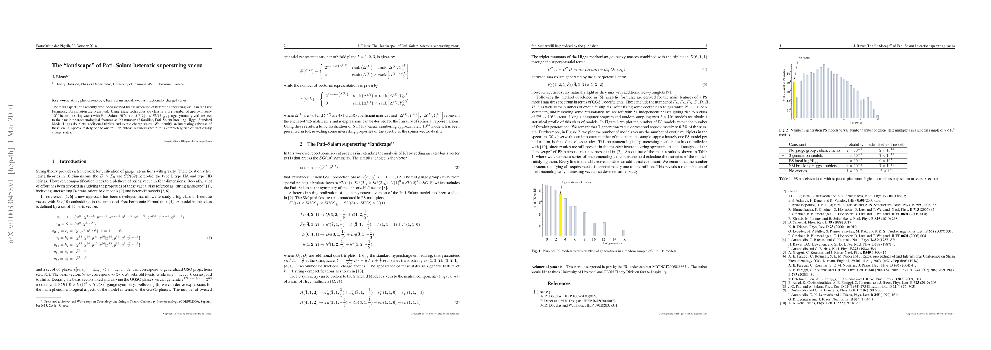 The main aspects of a recently developed method for classification of heterotic superstring vacua in the Free Fermionic Formulation are presented. Using these techniques we classify a big number of approximately $10^{15}$ heterotic string vacua with Pati--Salam, SU(4)x{SU(2)}_Lx{SU(2)}_R gauge symmetry with respect to their main phenomenological features as the number of families, Pati--Salam breaking Higgs, Standard Model Higgs doublets, additional triplets and exotic charge states. We identify an interesting subclass of these vacua, approximately one to one million, whose massless spectrum is completely free of fractionally charge states.