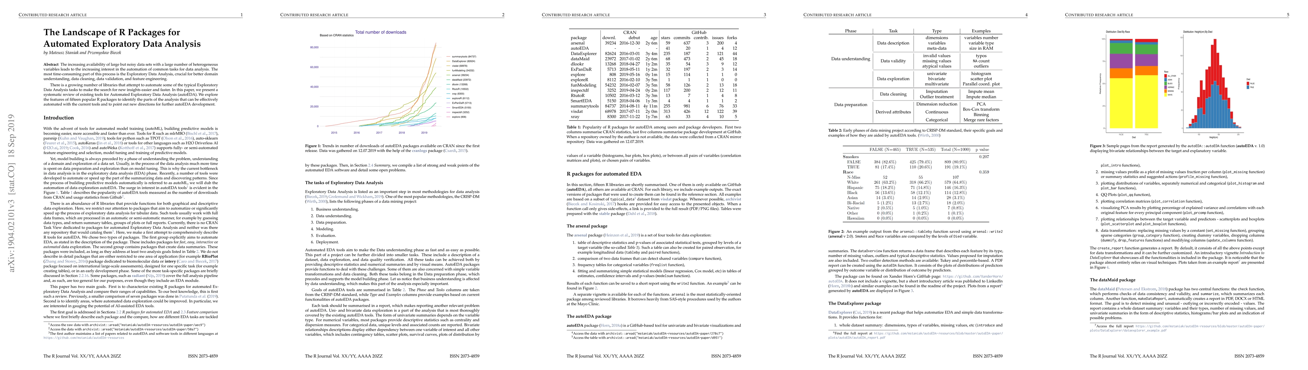 The increasing availability of large but noisy data sets with a large number of heterogeneous variables leads to the increasing interest in the automation of common tasks for data analysis. The most time-consuming part of this process is the Exploratory Data Analysis, crucial for better domain understanding, data cleaning, data validation, and feature engineering. There is a growing number of libraries that attempt to automate some of the typical Exploratory Data Analysis tasks to make the search for new insights easier and faster. In this paper, we present a systematic review of existing tools for Automated Exploratory Data Analysis (autoEDA). We explore the features of twelve popular R packages to identify the parts of analysis that can be effectively automated with the current tools and to point out new directions for further autoEDA development.