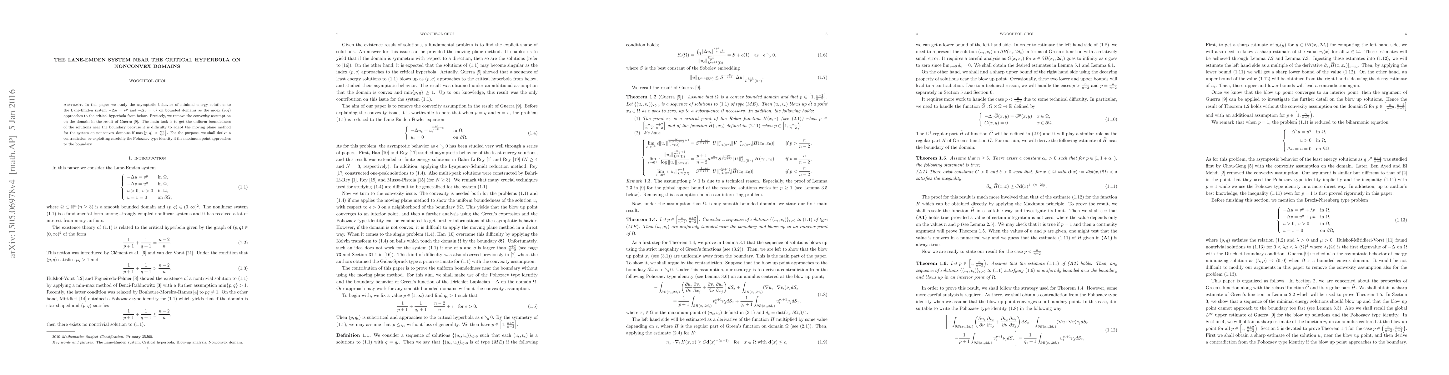 This paper investigates the asymptotic behavior of minimal energy solutions to the Lane-Emden system on nonconvex domains, removing the convexity requirement previously used. The study focuses on achieving uniform boundedness near the boundary, deriving a contradiction using a Pohozaeve-type identity when the maximum point approaches the boundary.