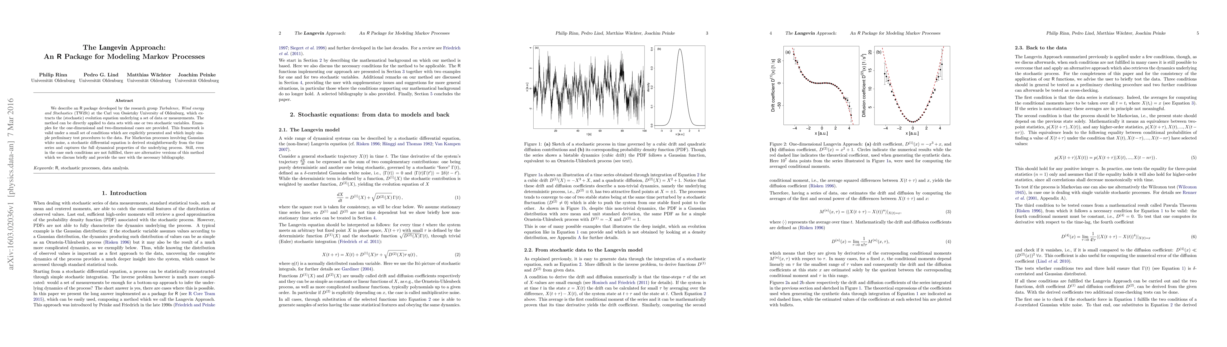 A new R package, Langevin Approach, models Markov processes using data with stochastic variables, deriving a stochastic differential equation that captures the process's dynamical properties.