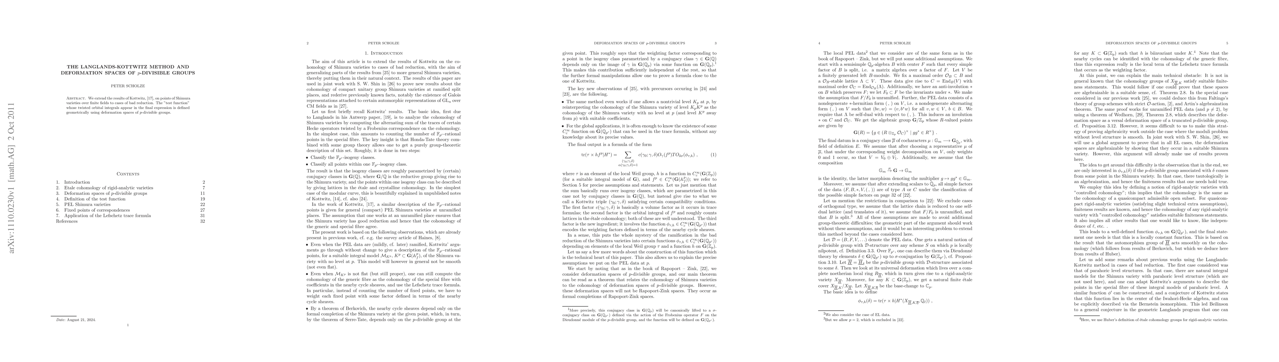 Summary: This paper extends Kottwitz's results on points of Shimura varieties over finite fields to cases with bad reduction, utilizing deformation spaces of $p$-divisible groups to define the "test function" in the final expression.