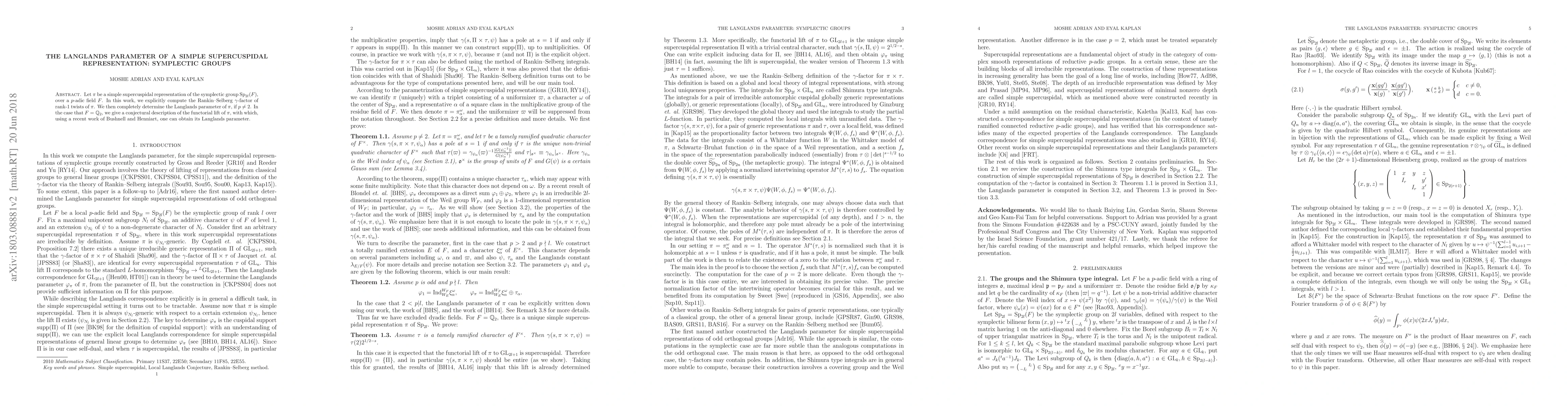 The paper introduces detailed computations of Rankin-Selberg $\gamma$-factors and determines the Langlands parameter for simple supercuspidal representations of symplectic groups over $p$-adic fields, excluding the case $p = 2$.