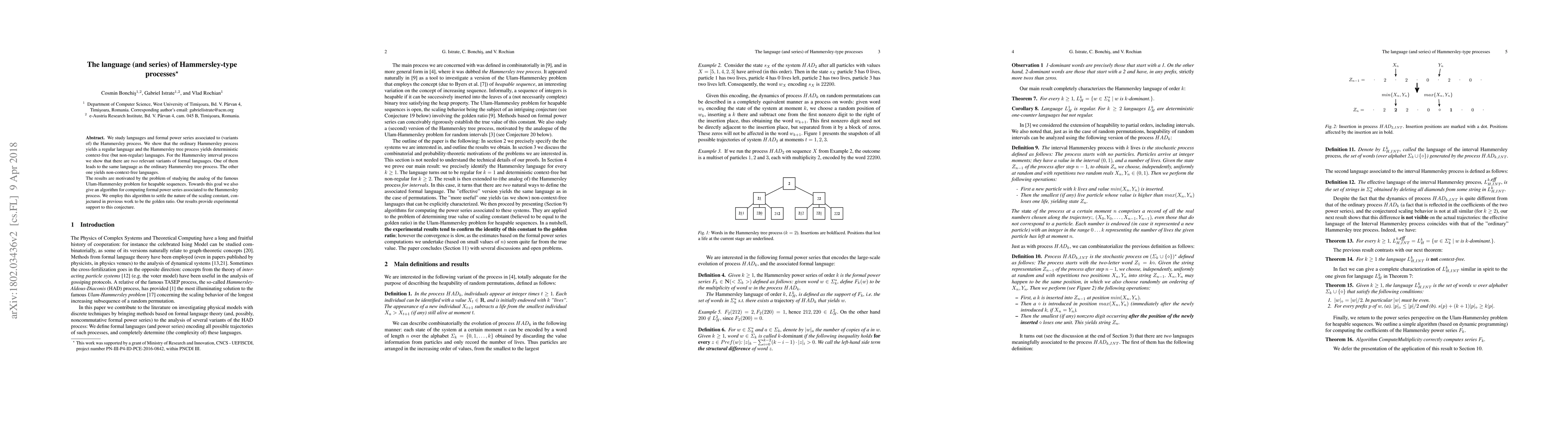 The paper introduces algorithms for computing formal power series associated with Hammersley-type processes and classifies the languages generated by these processes, distinguishing between regular, context-free, and non-context-free cases.