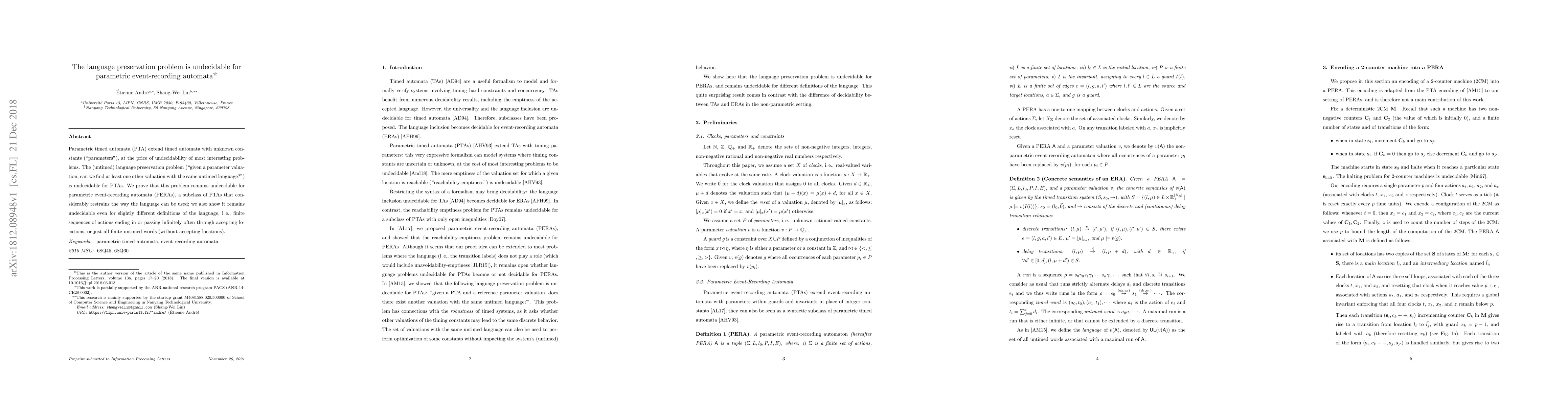The language preservation problem is undecidable for parametric event-recording automata, a subclass of timed automata with unknown constants, even under different definitions of the language.