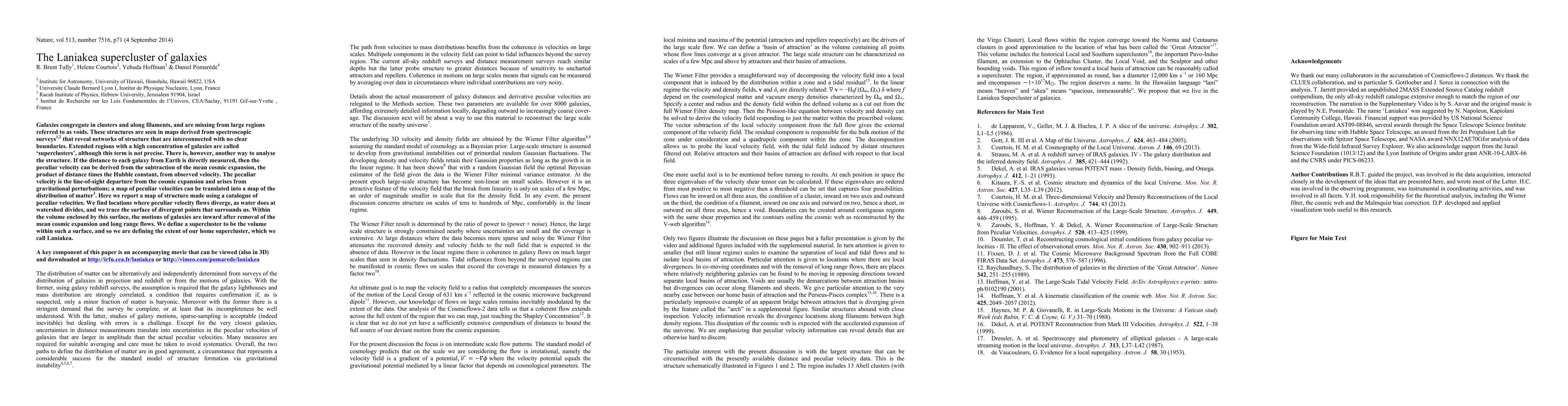 This paper introduces the Laniakea supercluster, a vast region defined by the inward motion of galaxies relative to cosmic expansion, identified through a map of peculiar velocities. The study reveals a surface encompassing this region, where galaxy motions converge inward, marking the boundary of our local supercluster.