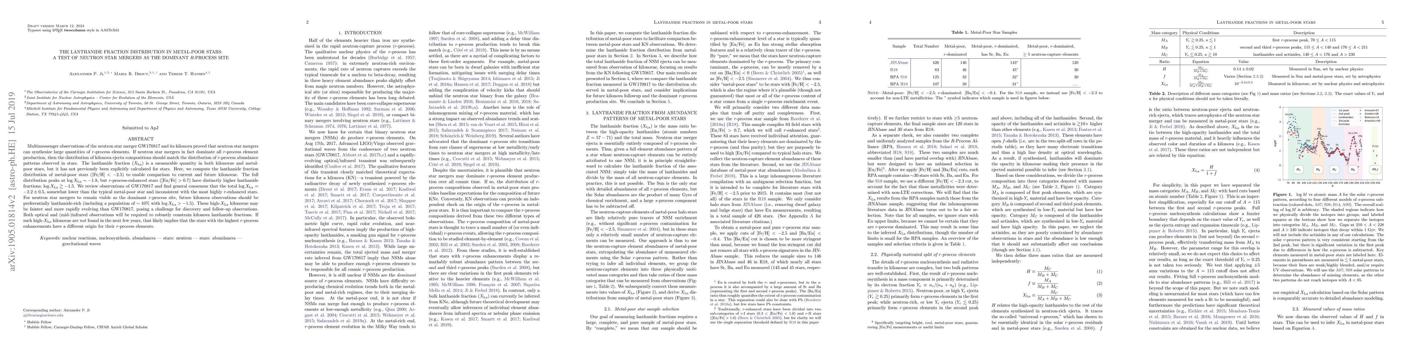 This paper investigates the lanthanide fraction distribution in metal-poor stars to test if neutron star mergers are the primary source of r-process elements. The study finds that most metal-poor stars have lower lanthanide fractions than the kilonova from GW170817, suggesting that high-lanthanide kilonovae, which are rare and potentially faint, may be necessary to validate neutron star mergers as the dominant r-process site.