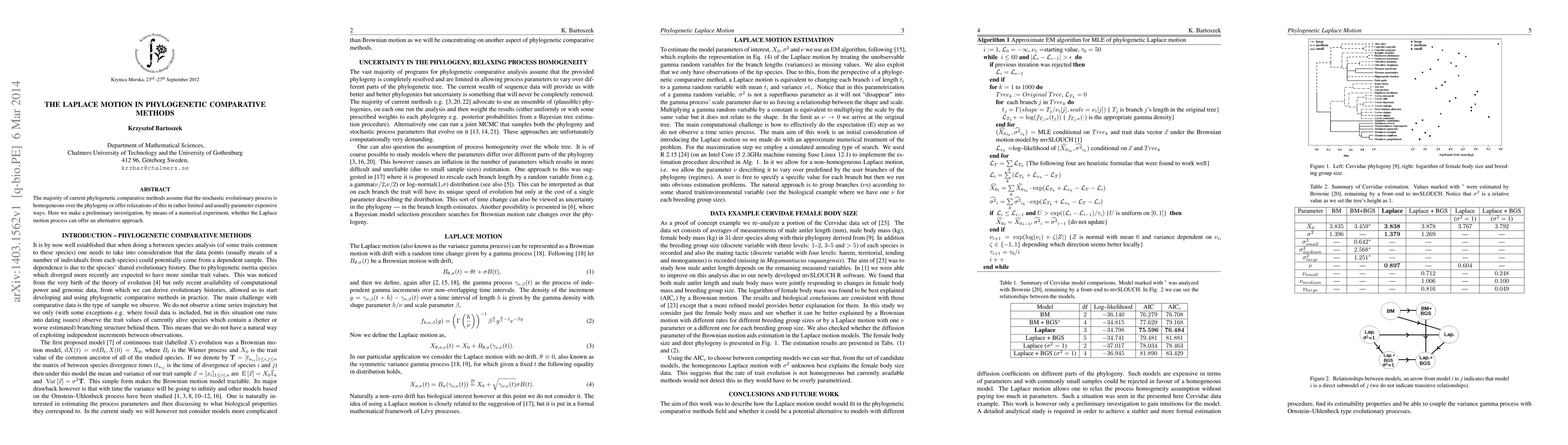 This paper explores the Laplace motion process as a potential alternative to traditional phylogenetic comparative methods, which often assume a homogeneous stochastic evolutionary process. Preliminary numerical experiments suggest this approach may offer a more flexible and cost-effective alternative.