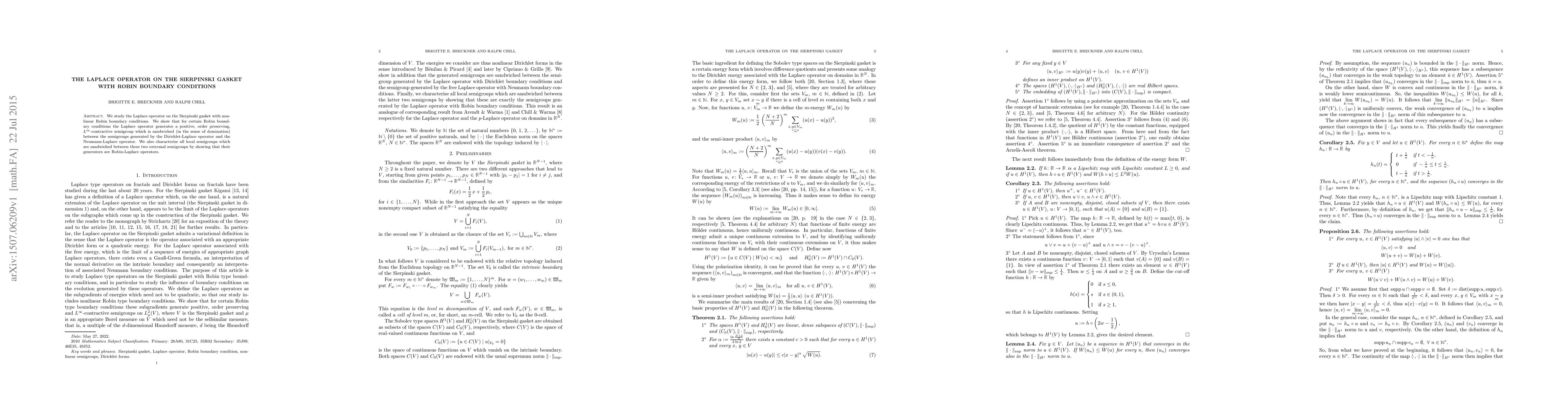 This paper investigates the Laplace operator on the Sierpinski gasket under nonlinear Robin boundary conditions, demonstrating that it forms a positive, order-preserving, and $L^\infty$-contractive semigroup. The study also characterizes all local semigroups that lie between the Dirichlet and Neumann-Laplace operator semigroups, showing they are generated by Robin-Laplace operators.