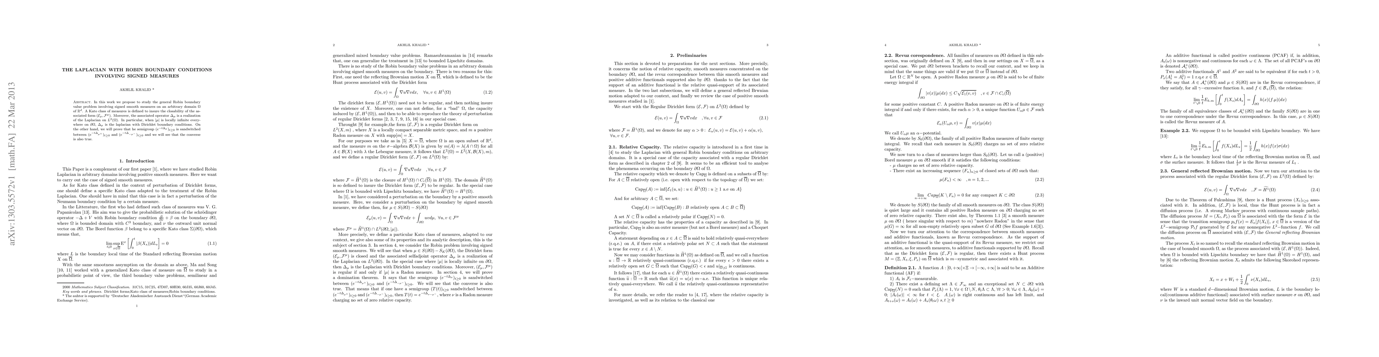 This research paper explores the Laplacian operator with Robin boundary conditions involving signed smooth measures on an arbitrary domain, showing a connection to Dirichlet boundary conditions in certain cases.