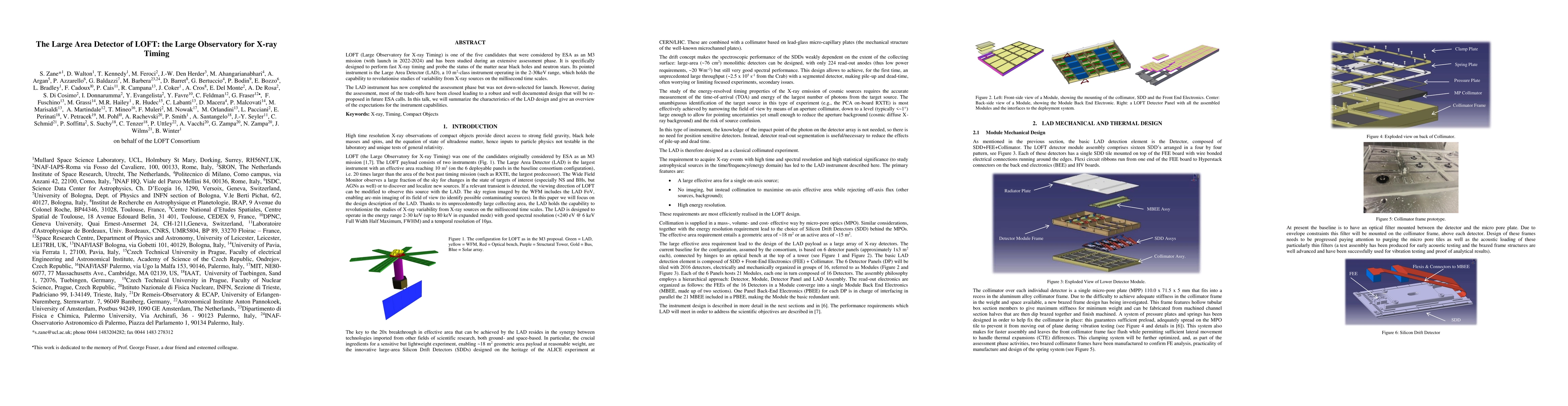 LOFT (Large Observatory for X-ray Timing) is one of the five candidates that were considered by ESA as an M3 mission (with launch in 2022-2024) and has been studied during an extensive assessment phase. It is specifically designed to perform fast X-ray timing and probe the status of the matter near black holes and neutron stars. Its pointed instrument is the Large Area Detector (LAD), a 10 m 2 -class instrument operating in the 2-30keV range, which holds the capability to revolutionise studies of variability from X-ray sources on the millisecond time scales. The LAD instrument has now completed the assessment phase but was not down-selected for launch. However, during the assessment, most of the trade-offs have been closed leading to a robust and well documented design that will be re- proposed in future ESA calls. In this talk, we will summarize the characteristics of the LAD design and give an overview of the expectations for the instrument capabilities.